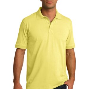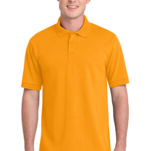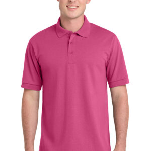 With an easy-to-care-for blend and a stain-release finish, this comfortable polo is a real value. | 5.5-ounce, 50/50 cotton/poly Made with up to 5% recycled polyester from plastic bottles Stain-release finish 1×1 rib knit collar and cuffs 3-button placket with dyed-to-match buttons Double-needle hem Due to the nature of 50/50 cotton/polyester neon fabrics, special care must be taken throughout the printing process.
