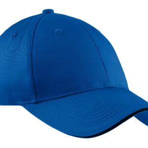 A tremendous value, this cap complements your logo with its contrast sandwich bill. | Fabric: 100% cotton twill Structure: Structured Profile: Mid Closure: Hook and loop