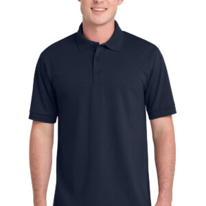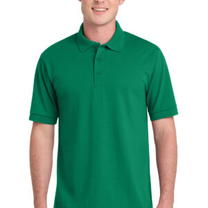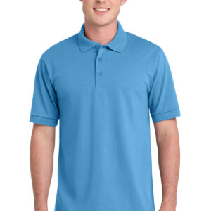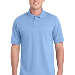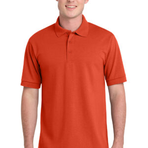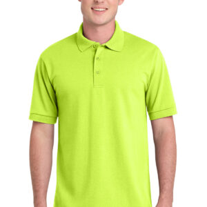 With an easy-to-care-for blend and a stain-release finish, this comfortable polo is a real value. | 5.5-ounce, 50/50 cotton/poly Made with up to 5% recycled polyester from plastic bottles Stain-release finish 1×1 rib knit collar and cuffs 3-button placket with dyed-to-match buttons Double-needle hem Due to the nature of 50/50 cotton/polyester neon fabrics, special care must be taken throughout the printing process.