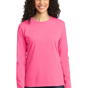 An indispensable t-shirt in our classic silhouette–with a very friendly price.| | 5.4-ounce, 100% cotton 90/10 cotton/poly (Athletic Heather) 50/50 cotton/poly (Dark Heather Grey, Heather Navy, Neon Pink) Side seamed with a contoured body for a feminine fit Open hem cuffs Removable tag for comfort and relabeling