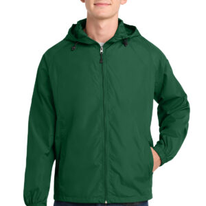 A hit on or off the field, this wind-resistant, water-repellent jacket is comfortable, stylish and quiet. Available for adults and youth, this favorite has a sporty hood and raglan sleeves. It also offers an unrestrictive fit and provide lightweight weather protection. | 100% polyester shell 100% polyester jersey lining with mesh insets at gussets Three-panel hood with drawcord and toggles Front slash pockets Articulated elbows for greater mobility Half elastic, half self-fabric cuffs for comfort Drawcord hem with toggle Decoration access pocket * Please note: This product is transitioning from woven labels to tag-free labels. Your order may contain a combination of both labels