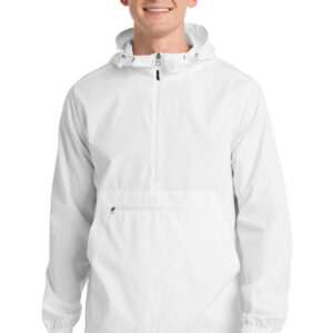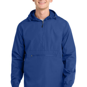 This water- and wind-resistant essential packs into its own front pocket-making it easy to throw it into a gym duffel. 100% polyester shell Three-panel hood with drawcord and toggles Tag-free label Extended reverse coil center front zipper for easy on/off Elastic at cuffs Packs into front zippered pocket Front pouch pocket Drawcord hem with toggles