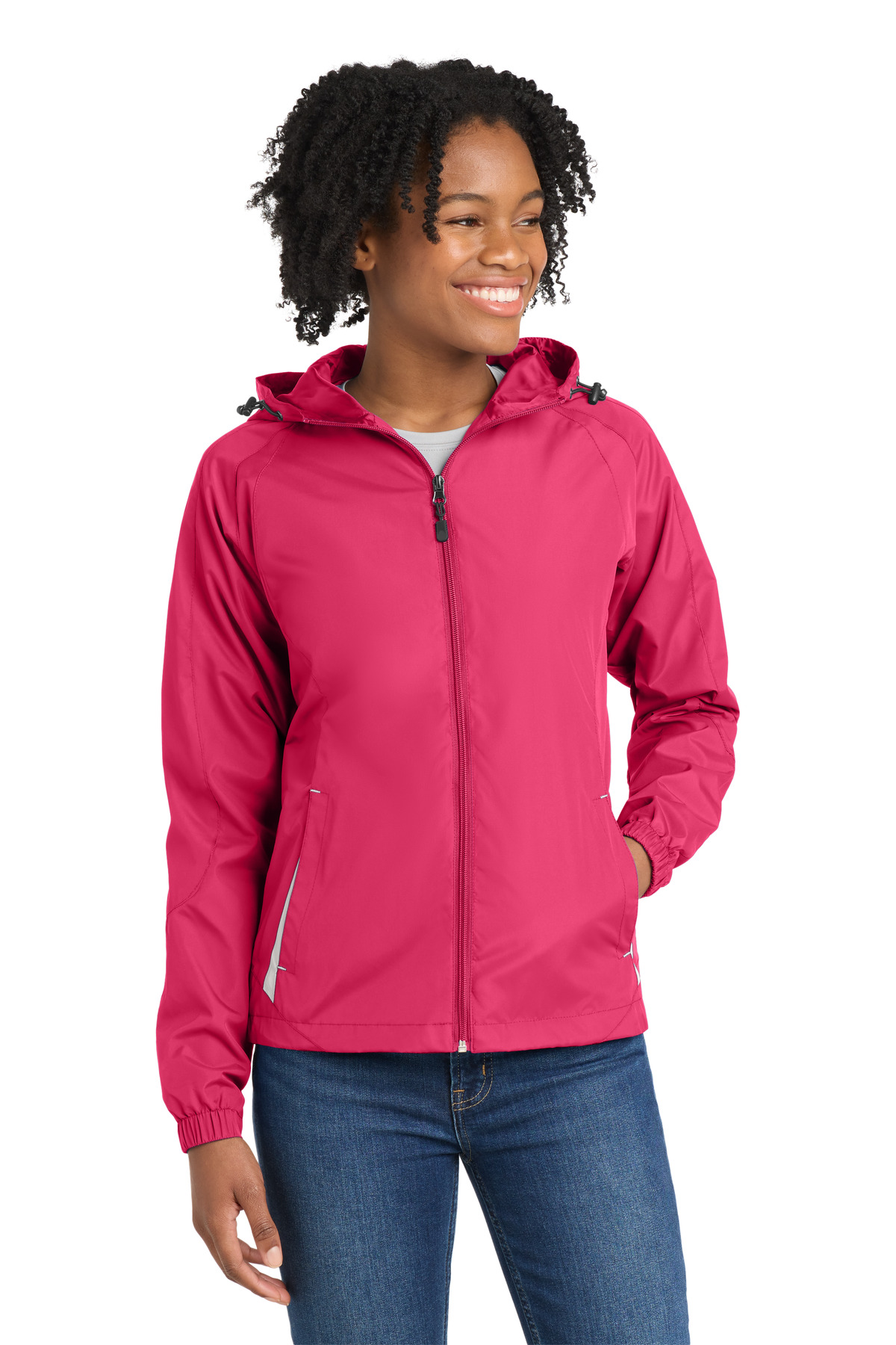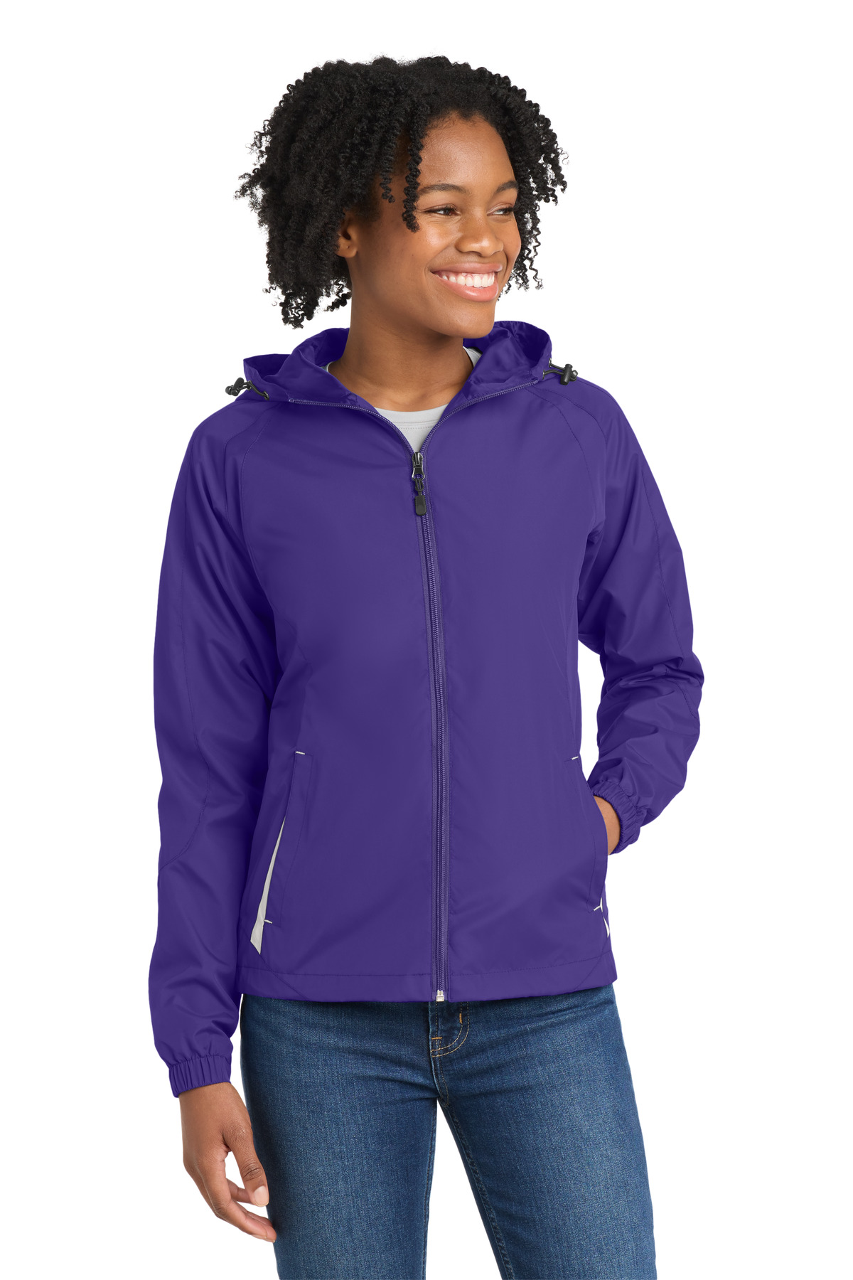 With a drawcord hood and enduring athletic style, this wind-resistant, water-repellent jacket is perfect for outdoor sports or everyday excursions. | 100% polyester shell 100% polyester jersey lining with mesh insets at gussets Three-panel hood with drawcord and toggle Front zippered pockets Half elastic, half self-fabric cuffs for comfort Decoration access pocket Drawcord hem with toggle * Please note: This product is transitioning from woven labels to tag-free labels. Your order may contain a combination of both labels