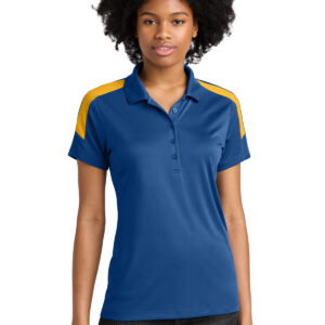 Support your team with this moisture-wicking polo. 3.8-ounce, 100% poly interlock with PosiCharge ® technology UPF rating of 30+ Moisture-wicking Perfect for all-around team uniforming Self-fabric collar Self-fabric neck tape 5-button placket Dyed-to-match buttons Colorblock shoulder panels Tear-away label