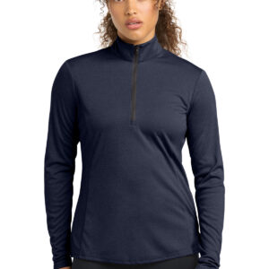 With a subtle heather texture and moisture-wicking technology, this lightweight, breathable 1/2-zip will help you achieve all your performance endeavors. 4.4-ounce, 100% polyester Tag-free label Princess seams Extended side vents Back yoke with pleat Drop tail rounded hem