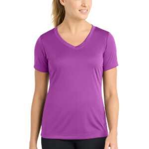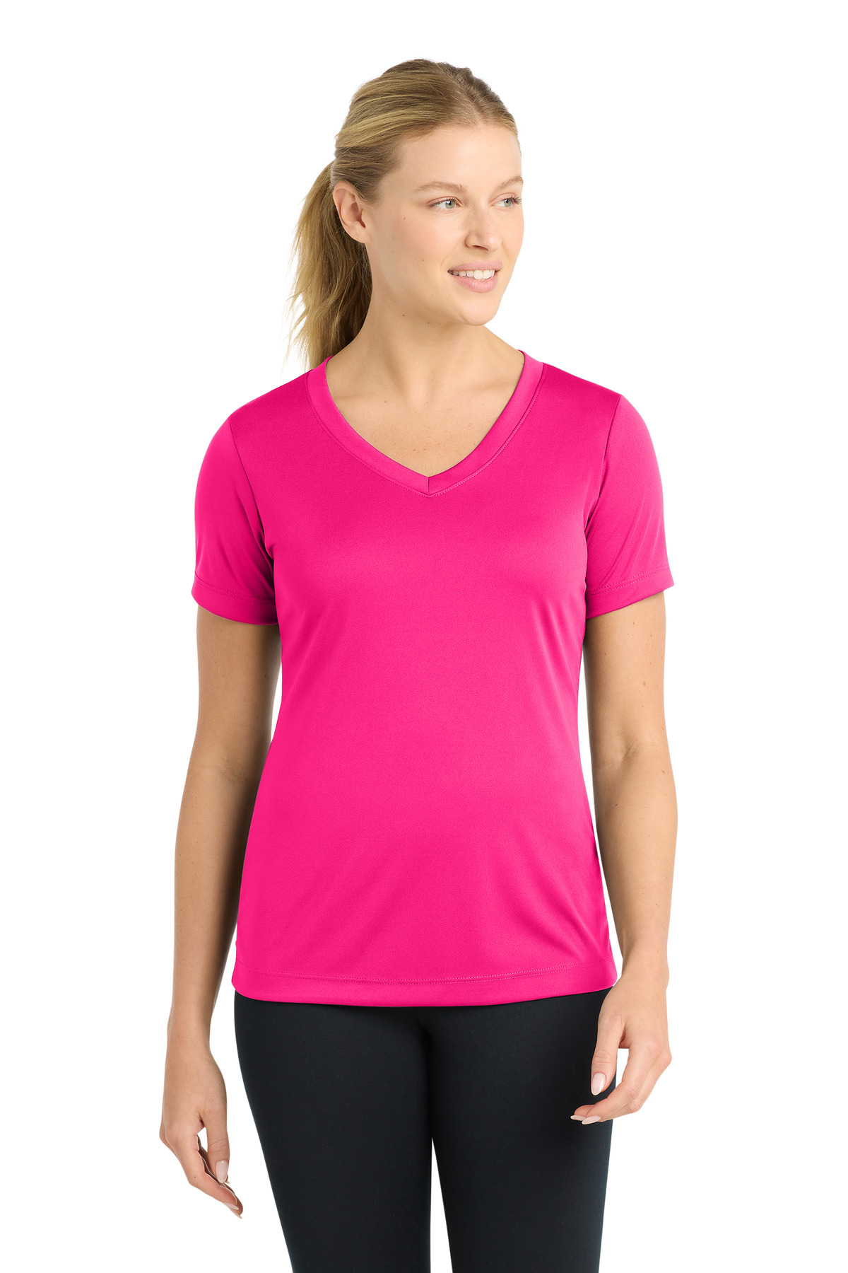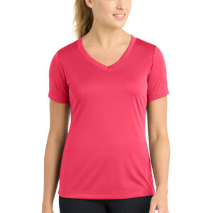 Lightweight, roomy and highly breathable, these moisture-wicking, value-priced tees feature PosiCharge technology to lock in color and prevent logos from fading. | 3.8-ounce, 100% polyester interlock with PosiCharge technology Removable tag for comfort and relabeling Self-fabric V-neck Set-in sleeves Given the extreme heat required for sublimation, please consult with your decorator. It is highly recommended to sample test product by color before production.