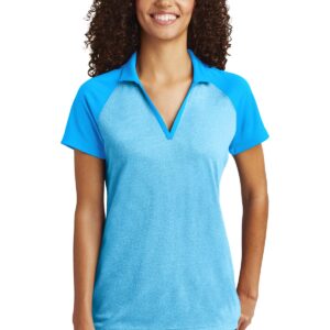 This breathable, moisture-wicking polo combines solid and matching tonal heather RacerMesh fabrics for a truly modern team look. 3.8-ounce, 100% polyester flat back mesh with PosiCharge technology Solid self-fabric Johnny collar Tag-free label Open placket Heather RacerMesh front and back body Solid RacerMesh sleeves and placket Raglan, open hem sleeves