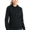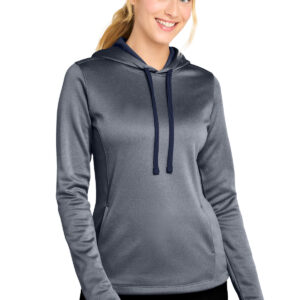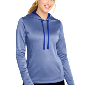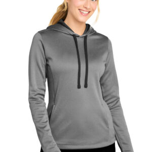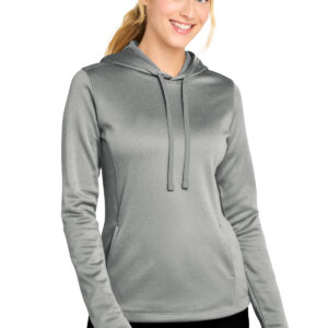 As a warm up or cool down layer, this moisture-wicking and color-locking fleece is sure to be a hit. 5.8-ounce, 100% polyester with PosiCharge technology Tear-away removable label Three-panel hood Front princess seams Integrated front pouch pocket Self-fabric cuffs and hem Drop tail hem