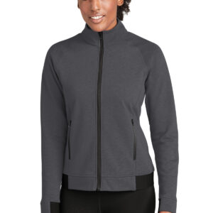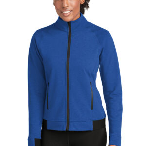 Achieve what you strive for in this elevated, moisture-wicking style that has a soft, natural hand and a slub appearance. PosiCharge technology keeps the colors strong and vibrant. 8.9-ounce, 90/10 poly/cotton fleece Tear-away removable label Cadet collar Raglan sleeves with coverstitching Zippered side pockets Half elastic, half self-fabric cuffs and hem for comfort Dart detail on back