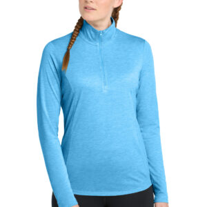 This lightweight pullover locks in color and wicks moisture. With unbeatable tri-blend softness, it’s versatile enough for year-round wear. 4.4-ounce, 75/13/12 poly/cotton/rayon jersey with PosiCharge technology 4.6-ounce, 75/13/12 poly/cotton/rayon jersey with PosiCharge technology (Black Triad Solid) Tear-away removable label Cadet collar Reverse coil zipper Princess seams Set-in sleeves Open cuffs and hem
