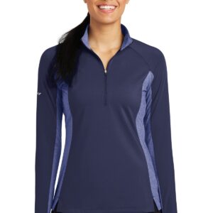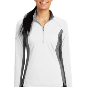 By mixing heather with a solid color and adding reflective hits, this moisture-wicking pullover has a technical look plus plenty of stretch for easy movement. 6.8-ounce, 90/10 poly/spandex jersey Soft-brushed backing Tag-free label Reflective details on right sleeve and lower back Feminine curved and blocked design details on back Cadet collar Reverse coil zipper Princess seams Raglan sleeves Open cuffs and hem Thumbholes to keep hands warm Drop tail hem