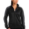 With an active team, you need track gear that can keep up. Made from comfortable tricot, the relaxed styling of our coordinating jackets and pants allow ample room for easy movement, while the athletic-inspired styling ensures your logo stands out. | 100% polyester tricot Tag-free label Soft-brushed backing Flatlock stitching throughout Gently contoured silhouette Cadet collar Reverse coil zipper Raglan sleeves Side zippered pockets Open hem with drawcord and toggles * Please note: This product is transitioning from woven labels to tag-free labels. Your order may contain a combination of both labels
