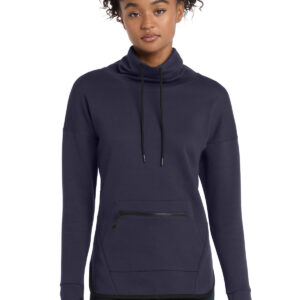 This double knit, cotton-rich pullover is a triumph with integrated pockets and rubberized zippers for a modern look and feel. 7.1-ounce, 71/29 cotton/poly double-knit fleece Tag-free label Drop shoulder Front seaming detail Integrated front rubberized zippered pocket Thumbholes for warmth Drop tail hem