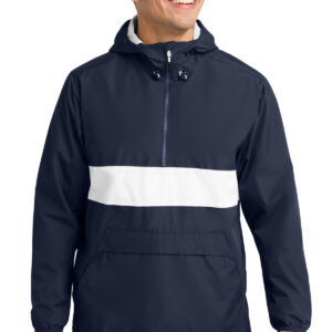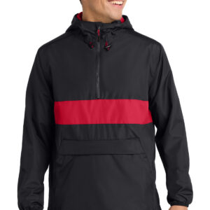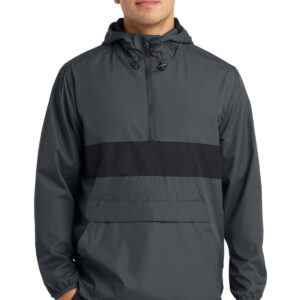 A zippered pocket keeps valuables accessible and secure in this element-beating anorak.| 100% polyester shell 100% polyester mesh body and hood lining 100% polyester woven sleeve lining Tag-free label Three-panel hood with drawcord and toggles Angled chin guard for additional comfort Exposed molded zipper Stretch binding at cuffs Left side seam zipper for easy on/off Two pockets in one: front pocket includes a top zippered pocket to secure valuables Slight drop tail hem Drawcord hem with toggles